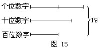 十位數字不知道是幾,那該怎樣算呢?可是由圖中可以看出,只要從19里減去十位數字后,那么得數一定是3的倍數。你不妨可以假設十位數字是0、1、2、……8、9,挨個地試一下。譬如十位數字假設是0,那么19-0=19,19不是3的倍數,這個不行。十位數字假設是1呢,那么19-1=18,18是3的倍數,18÷3=6,那么6就是百位數字了。別忙,百位數字是6,那么個位數字就是6×2=12,這可不行,因為12是兩個數字。那就再試一下。十位數字假設是4呢,19-4=15,15÷3=5,5×2=10,個位數字是10,這也不行。