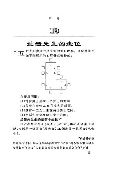 測試你的邏輯推理能力13(蘭瑟先生的座位)